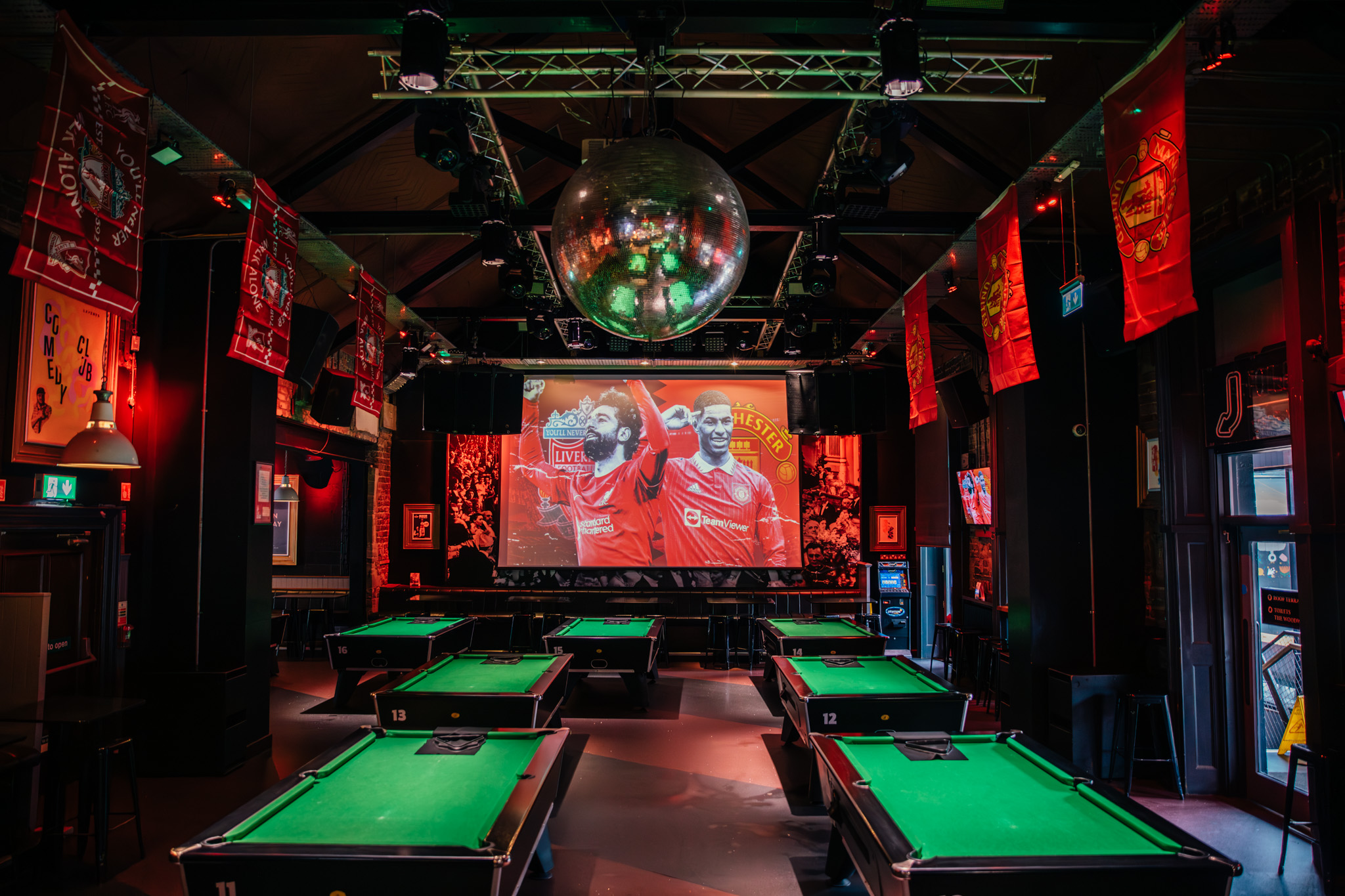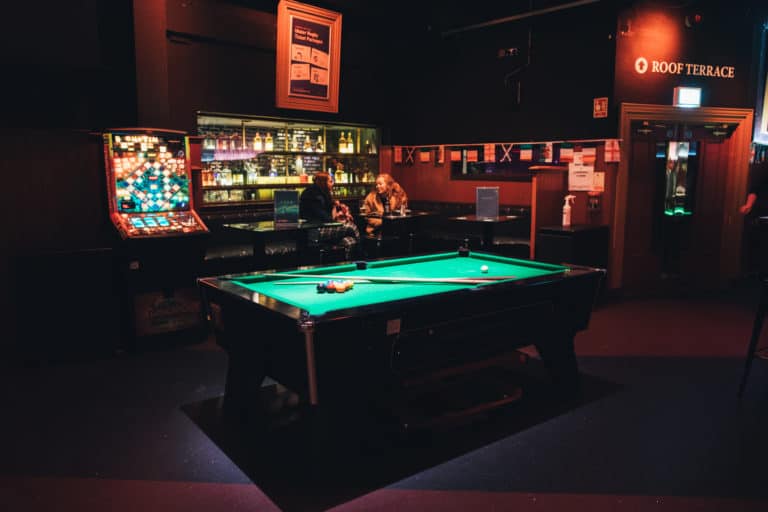 As you venture into this expansive space, you’ll be immediately struck by the scale & size of the room. The soft rustle of cue sticks and gentle clatter of balls lend a rhythmic heartbeat to the room, drawing you into a game that transcends mere sport. The Ballroom is more than a pool hall; it’s a shape-shifter of entertainment, capable of transforming into a pulsating 750 capacity nightclub. With cutting-edge sound and lighting systems, the space metamorphoses, offering an exhilarating experience in a unique space.