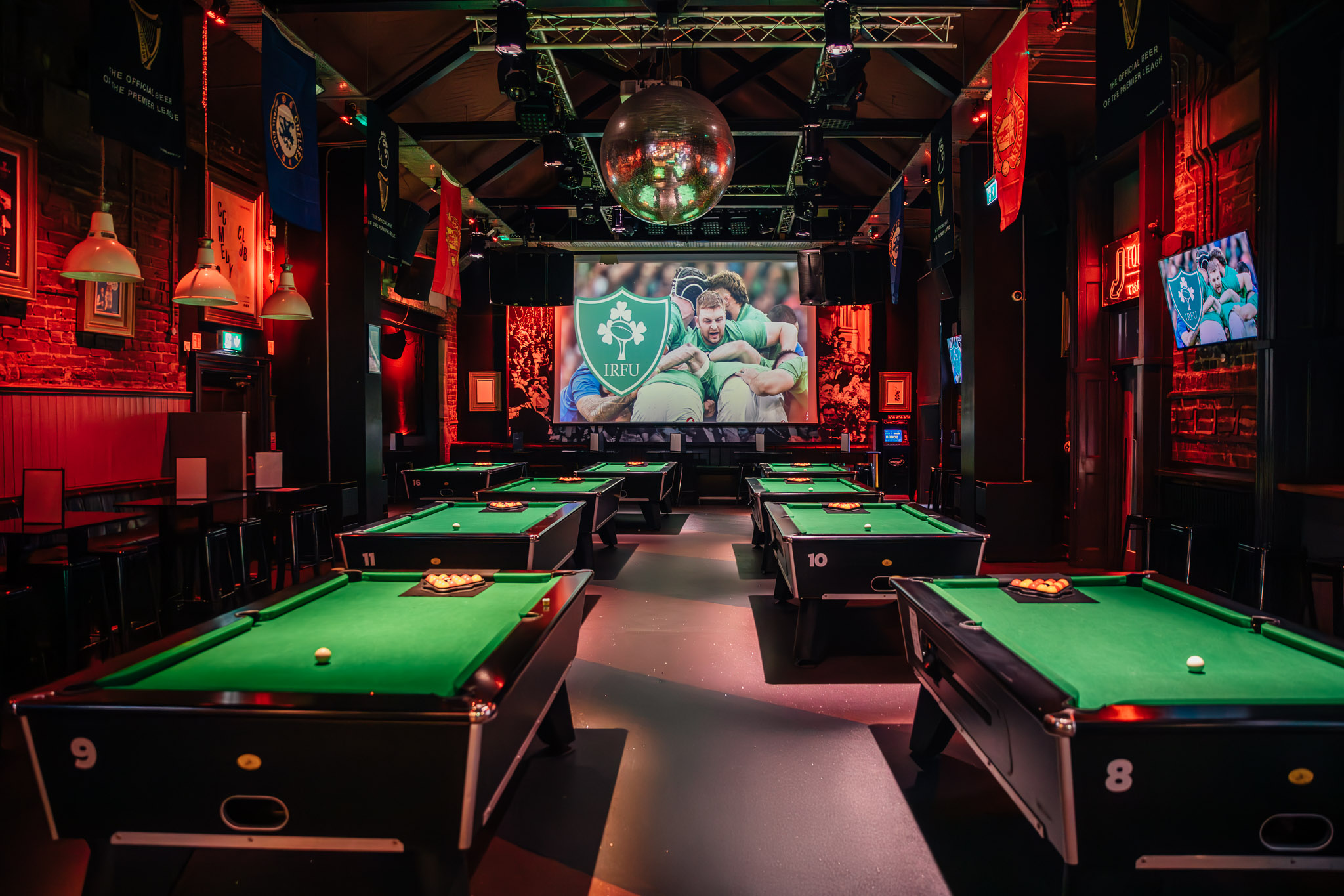The Ballroom, on our top floor, is Ireland's largest pool room. It boasts an impressive 22 pool tables. It’s a shape-shifter of entertainment, capable of transforming into a pulsating 750 capacity nightclub. With cutting-edge sound and lighting systems, the space metamorphoses, offering an exhilarating experience in a unique space.